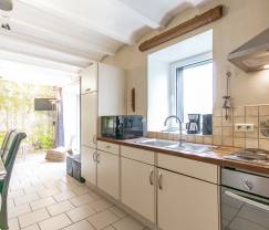 Dit charmante vakantieverblijf in het gezellige stadje Neufchâteau, provincie Luxemburg, werd onlangs gerealiseerd in de bijgebouwen van een boerderij. Gelegen in een groenrijke omgeving, omringd door verschillende dieren, vormt dit verblijf de ideale vakantiewoning voor een gezin met kinderen. In de omheinde tuin kunnen de kinderen heerlijk ravotten, en voor de allerkleinste zijn er verschillende speeltoestellen, zoals zandbak en glijbaan, aanwezig. Het huisje heeft een knusse woonkamer met grote eettafel en keurige keuken, die van alle gemakken is voorzien (onder andere een oven, magnetron, elektrische kookplaat en vaatwasser). Verder telt de woning twee slaapkamers, een nette badkamer met ligbad . Door gebruik van de verschillende materialen als hout en steen in de slaapkamers, ontstaat een gezellige sfeer waardoor u zich direct thuis zult voelen.
