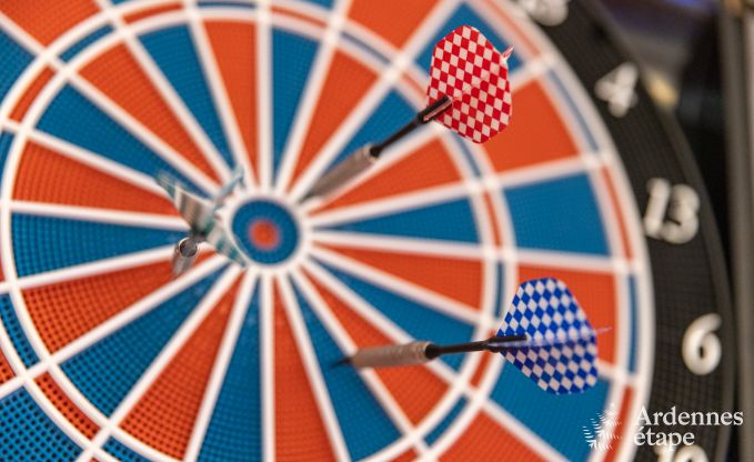 Voor de liefhebbers van spel en vermaak is er een uitgebreide speelkamer met een biljarttafel, tafelvoetbalspel en darts. De bar biedt de perfecte plek om samen te komen en te genieten van een drankje. Buiten vind je een overdekt terras met tuinmeubilair, ideaal voor gezellige barbecues.
