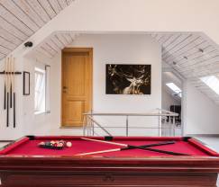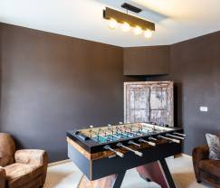 Deze ruime vakantiewoning is de ideale plek om alles even te vergeten. Nestel je in één van de uitnodigende Chesterfield zetels dicht bij het knisperend vuur, geniet van een rustige babbel of dek de lange eettafel voor een gezellige brunch. Ook buiten is het heerlijk! Lounge langs het zwembad om wat extra vitamine D op te doen, terwijl je trouwe viervoeter een dutje doet in de schaduw van het overdekt terras en de kids in het zwembad ravotten. Ook wie graag streekproducten op de barbecue grilt, kan een oogje op het zwembad houden. Zo is niemand nooit ver weg, gezellig!