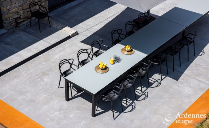 In deze luxevilla kan je zowel lekker ontspannen als voorbeeldig productief zijn. En waarom niet de twee combineren tijdens een zakelijk verblijf? Of een werkvakantie? Hier kan het allemaal! Om te beginnen beschik je over 9 comfortabele slaapkamers en 9 prachtige badkamers. Daarnaast beschik je binnen over een superuitgeruste moderne keuken, een grote eetkamer en een gezellige zitkamer met houtkachel. En daar bovenop geniet je van een hele reeks wellness- en ontspanningsmogelijkheden! Zoals een binnenzwembad, een hamam, een loungeruimte, een sauna en een speelkamer met biljart en voetbaltafel. Ben je hier om professionele redenen? Dan vind je alles wat je nodig hebt in de ruime vergaderzaal met projectieapparatuur. Buiten kan je je dan weer ontspannen in je enorme tuin met petanquebaan en op het grote terras is het heerlijk barbecueën. Ten slotte beschik je over een eigen parking voor 7 auto's.