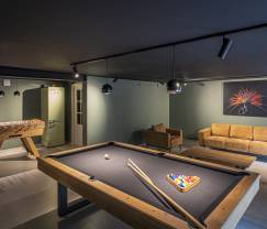 Deze luxe villa is een bijzonder rustgevend cocon waarin je mooie herinneringen zal maken. Nestel je in de uitnodigende zithoek dicht bij het vuur om alles even te vergeten. De kids? Die kunnen terecht in de super leuke speelkamer die voor hen werd voorzien. De iets grotere speelvogels? Die zal je in de kelderbar vinden! Pingpong, biljart et tafelvoetbal, maar ook arcade games zorgen hier voor uren entertainment. Ook buiten, in de sauna en in het warmwaterbad, kan je heerlijk ontspannen met zicht op deze groene oase. Wij zijn ook fan van de leuke speelhoek met boomhut voor de kids!