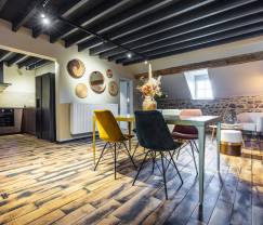 Op een groot domein, een verbouwde voormalige herenboerderij, vind je de voordelen van een vakantiewoning en een hotel. Je bent volledig onafhankelijk, met een woonkamer, een keuken, 2 slaapkamers en 1 badkamer helemaal voor jezelf. Daarnaast kan je naar believen gebruik maken van alle troeven van het domein: grote tuin, restaurant, wellness, binnenzwembad, buitenzwembad en hot tub in het seizoen. Het poolhouse, de sauna en het natuurzwembad zijn ook in elk seizoen beschikbaar. Beddengoed, badlakens, badjassen en wellness-handdoeken zijn aanwezig en op reservering zijn ook massages/lichaamsverzorging mogelijk. De inrichting in het hele kasteel is tot in de puntjes verzorgd. In dit 3,5 sterren appartement houden we vooral van de gedurfde stijl, de spectaculaire verlichting en het spel van kleuren en materialen. Deze gedurfde en warme look brengt je meteen in de stemming om te genieten van de landelijke omgeving.