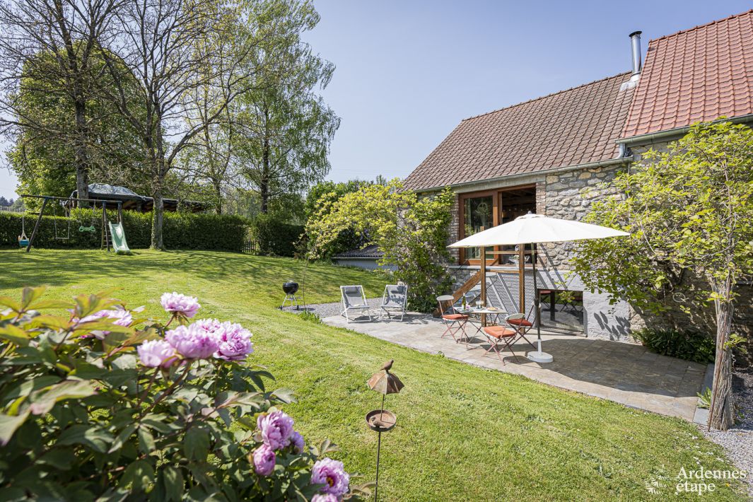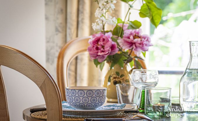 Warm, rustiek en comfortabel: dit vakantiehuisje boordevol cachet midden in de natuur is de ideale plek om je batterijen op te laden! Binnen is het heerlijk cocoonen, en de prachtige privé tuin met schommel nodigt je uit om volledig te ontspannen. Je verblijft aan het eind van een doodlopende straat, aan de rand van het bos: ideaal als je op zoek bent naar rust. Sluit je ogen in de comfortabele loungestoelen, geniet van een gezellige lunch op het terras of ga de geitjes achteraan de tuin begroeten. Leuke extra: hier heb je ook toegang tot een tennisbaan!