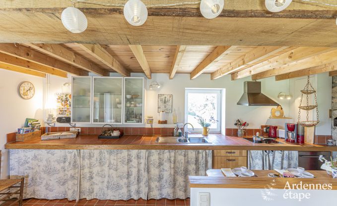 Klein en gezellig vakantiehuis aan de rand van het bos in een mooi dorpje in de Condroz. Grote tuin en tennisbaan! Warm, rustiek en comfortabel : dit vakantiehuisje boordevol cachet midden in de natuur is de ideale plek om je batterijen op te laden! Binnen is het heerlijk cocoonen, en de prachtige privé tuin met schommel nodigt je uit om volledig te ontspannen. Je verblijft aan...