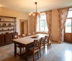 De ruime keuken is modern en perfect om lekker maaltijden te bereiden voor het hele gezin. De eetkamer ademt een serene sfeer, die doet wegdromen aan de bewoners uit voorgaande eeuwen geleden.