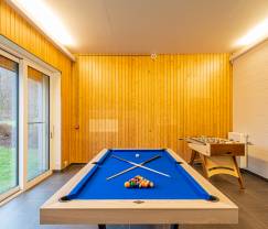 Deze enorme luxevilla voor 18 personen ligt in een gehucht in de provincie Luxemburg, dicht bij een bos en een rivier. Ze biedt gelijkvloerse toegang en een lift voor mensen met beperkte mobiliteit. De 8 slaapkamers en 7 badkamers zijn uiterst comfortabel. De prachtige leefruimtes garanderen heerlijke momenten van ontspanning met hun eigentijdse inrichting. Zo zijn er 2 salons, de ene met een cassettehaard en de andere met een houtkachel. Zullen zeker ook enorm in de smaak vallen: de speelkamer met een Amerikaanse biljarttafel en tafelvoetbal, de ontspanningsruimte met een sauna voor 6 personen en een prachtig overdekt zwembad (8m x 4m x 1,5m) verwarmd tot 28° en het hele jaar door beschikbaar. Er is ook een volledig uitgeruste vergader- en projectiezaal met bar, koelkast en houtkachel voor zakelijke verblijven. De moderne keuken is volledig uitgerust met al wat je maar kan wensen.