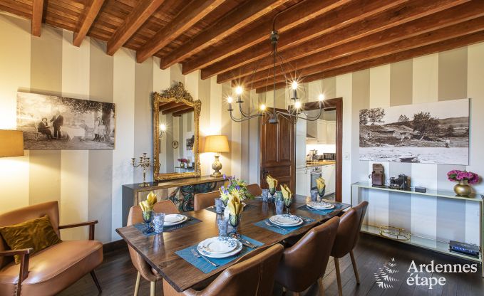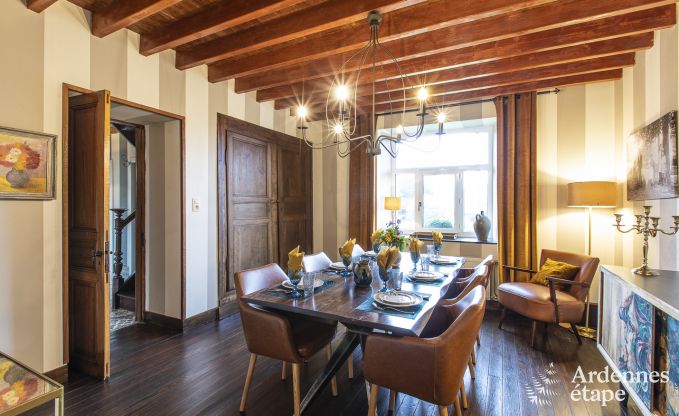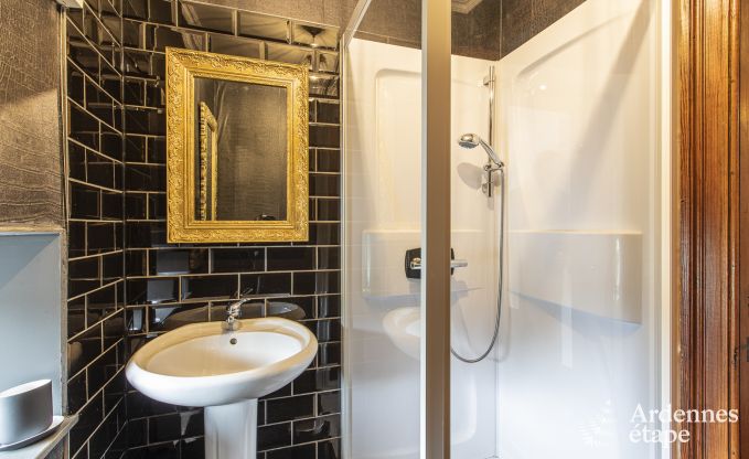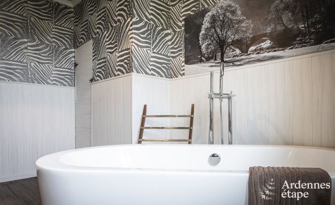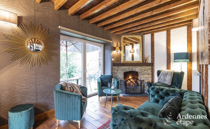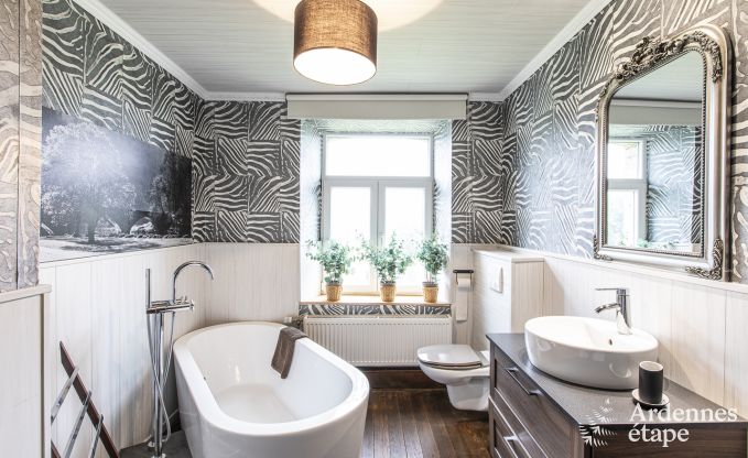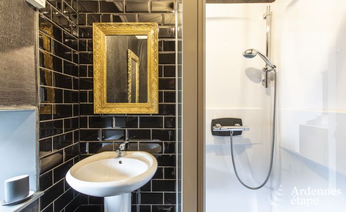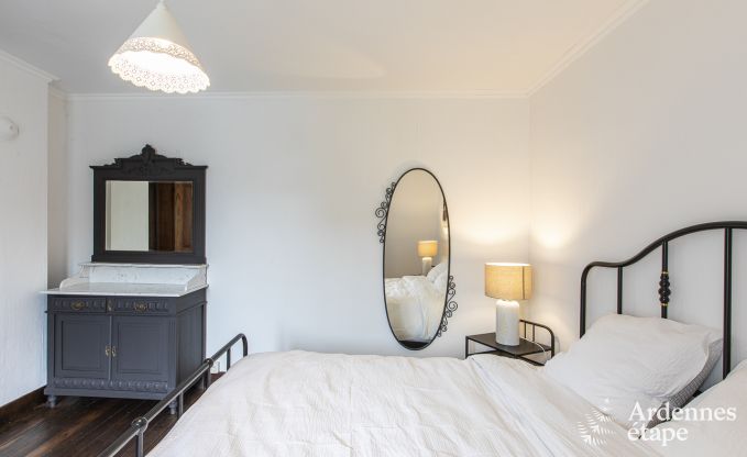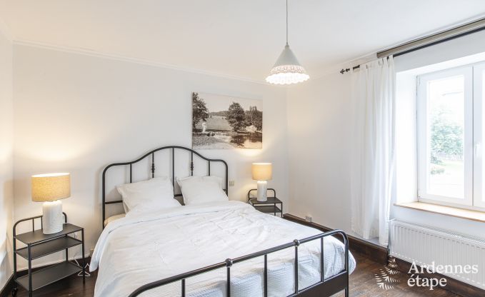 Dit huis bevat nog heel wat elementen uit het verleden: Ardense steen, oud parket, prachtige deuren, cementtegels ... Een stukje geschiedenis, kortom! En over die geschiedenis vertellen de eigenaars je graag meer, inclusief foto's uit vervlogen tijden. De decoratie en de indeling geven dit vakantiehuisje een moderne twist die de charmante uitstraling alleen maar ten goede komt. Met toetsen van zwart en wit fluweel – kleuren die de eigenaars heel zorgvuldig kozen – ademt het interieur een gastvrije vibe.