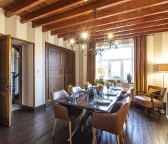 Dit huis bevat nog heel wat elementen uit het verleden: Ardense steen, oud parket, prachtige deuren, cementtegels ... Een stukje geschiedenis, kortom! En over die geschiedenis vertellen de eigenaars je graag meer, inclusief foto's uit vervlogen tijden. De decoratie en de indeling geven dit vakantiehuisje een moderne twist die de charmante uitstraling alleen maar ten goede komt. Met toetsen van zwart en wit fluweel – kleuren die de eigenaars heel zorgvuldig kozen – ademt het interieur een gastvrije vibe.