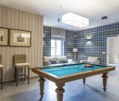 Op de begane grond is de grote eetkamer, welke in open verbinding staat met de woonkamer (met directe toegang tot het terras), de ideale plek om met familie of vrienden samen te komen. Een tweede tv-lounge met bar en biljart is ook beschikbaar voor het plezier van jong en oud.