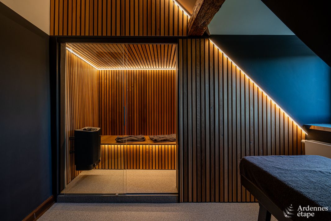 De villa beschikt over een uitgebreide reeks faciliteiten die je verblijf onvergetelijk maken. Ontspan in de privé wellnessruimte met een sauna en bubbelbad, perfect voor een moment van rust na een dag vol avontuur. De inrichting van de woning is chic en elegant, met een strak design dat een gevoel van luxe uitstraalt. De 2 ruime slaapkamers, elk met eigen badkamer bieden het comfort van een hotel. Zo zijn bij je aankomst alle bedden opgemaakt en hangen de handdoeken klaar.