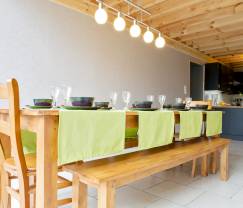 Infrastructure très conviviale. A améliorer : - trop petit frigo et pas de surgélateur : un peu difficile pour 9 personnes - info pour l'évacuation des déchets (pas de containers) - pas de quoi nettoyer (ramassette)