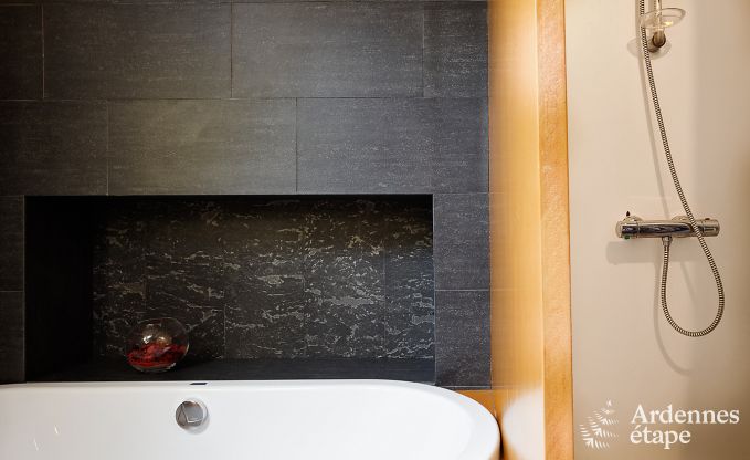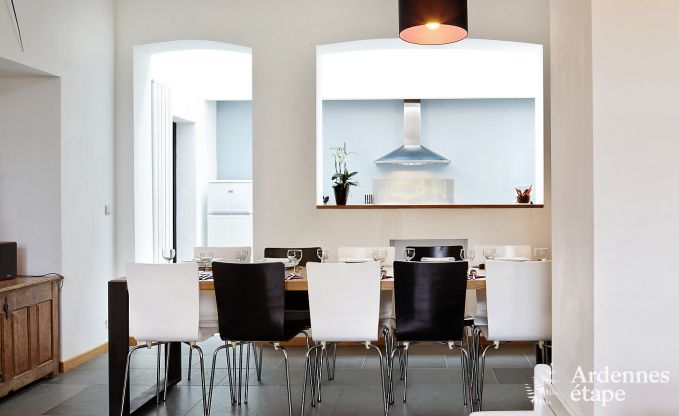 Deze unieke vakantiewoning voor negen personen in Blieberg, provincie Luik, maakt deel uit van het kasteel van Beusdael. De accommodatie is gerealiseerd in de bijgebouwen van het kasteel en kijkt uit over de groenrijke omgeving, wat schitterende plaatjes oplevert. In de grote, lichte leefruimtes is het aangenaam vertoeven. De kasteelwoning beschikt over vijf slaapkamers, twee luxe badkamers waarvan een met ligbad, een ruime woonkamer met kabeltelevisie en riante eetkamer met mooie robuuste tafel. De moderne keuken ligt deels afgescheiden van de overige leefruimtes en beschikt over alle benodigde apparatuur, zoals keramische kookplaat, vaatwasser, magnetron en oven. De vakantiewoning herbergt enkele leuke hoekjes, zoals de kleine leeszaal/bibliotheek op de eerste verdieping. Het betreft een heerlijk, comfortabel en uniek vakantieverblijf, ingericht met oog voor detail, waar u heerlijk kunt genieten van de rust en ruimte.