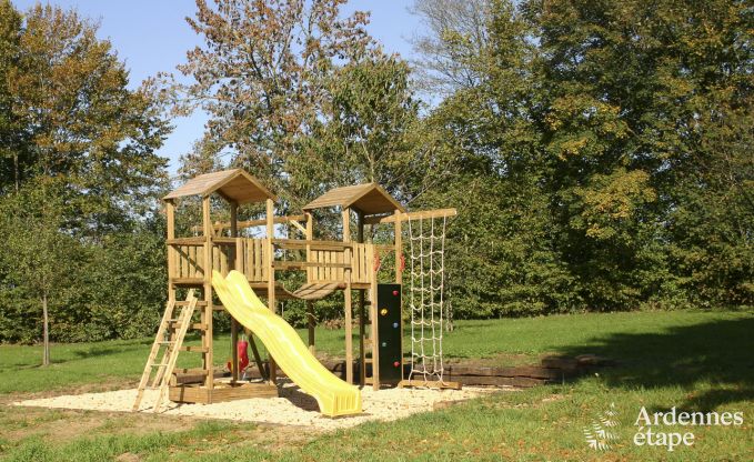 Dit 3-sterren vakantiehuis ligt op 10 km van Redu, in de provincie Luxemburg. Dit mooie verblijf is gebouwd in een landelijke gevelsteen en heeft een mooi zichtbaar gebinte. De groepsaccommodatie dateert van de 19de eeuw en werd in 2005 gerenoveerd om alle moderne comfort te kunnen bieden. De benedenverdieping heeft een salon die is uitgerust met een tv, een dvd en een cassettehaard voor schitterende winteravonden. Beneden vind je ook een handige en goed uitgeruste open keuken met eetkamer, waar je gezellige momenten kan beleven. De 1ste verdieping bevat 4 slaapkamers en 2 badkamers, wat bijzonder handig is voor een groepsvakantie. De 2de verdieping of zolderverdieping werd ingericht als speelkamer. De ruimte is onder andere voorzien van een pingpongtafel en airhockey. Er is internetaansluiting via wifi mogelijk in het hele huis. In de uitgestrekte open tuin geniet je van zonnige dagen met de hele groep, je vindt er immers een speelplein en een barbecue. Het zicht op het platteland in de omgeving is zeer rustgevend.