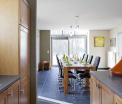 Deze groepsaccommodatie onderscheidt zich door zijn sobere elegantie en is het ideale optrekje voor een groep tot en met 17 personen. De vakantiewoning bestaat eigenlijk uit twee onafhankelijke woningen die via een ontzettend praktisch en overdekt sas met elkaar in verbinding staan. In de ene woning kunnen 8 gasten verblijven, in de andere 9. Je zult over een maximum aan comfort beschikken want beide huizen hebben hun eigen leefruimte met zitkamer, eetkamer en uitgeruste keuken. Het charmante meubilair en de verrukkelijke volumes zorgen ervoor dat je je tijdens je vakantie echt thuis voelt. Samenkomen bij de haard, culinair aperitief, sauna of partijtje kicker (betalend)…zet het allemaal op de agenda! Er zijn 3 slaapkamers in het ene huis en 4 slaapkamers in het andere. Alle 7 slaapkamers zijn als knusse nestjes mooi ingericht. Buiten zul je genieten van de grote tuin van 1600 m² die gedeeltelijk omheind is en een boomrijk park van 7500 m². De kinderen zullen hier volop kunnen ravotten! De volwassenen kunnen plaats nemen op de twee goed gelegen terrassen en bij mooi weer de barbecue aansteken.