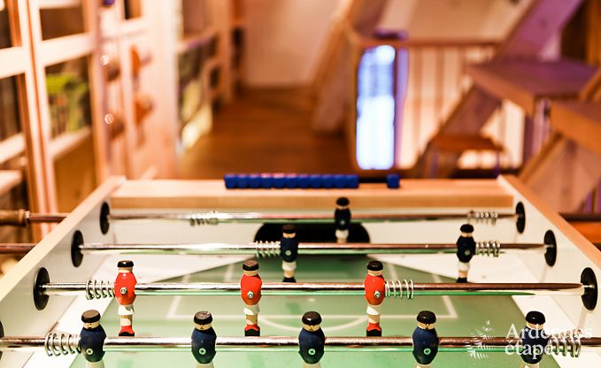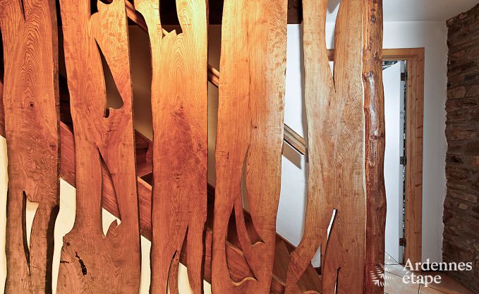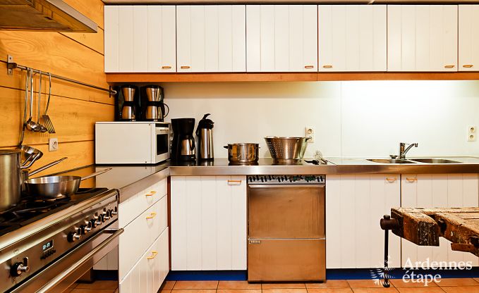 Binnenin is deze boerderij zowel ruim als helder. Het hout dat werkelijk overal aanwezig is, werkt net zoals de open haard gezelligheid en warmte in de hand. In deze huurwoning van 480 m2 kunnen 34 personen gehuisvest worden verspreid over 9 slaapkamers. Je beschikt tevens over 4 badkamers en een ontspanningsruimte met sauna, douche, hometrainer en step.