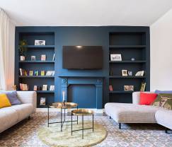 Op de begane grond vind je de leefruimtes: een ruime woonkamer in een stijlvolle blauw-nacht kleur met originele vintage tegels. De grote eetkamer grenst aan de volledig uitgeruste keuken, waar je met plezier kunt koken en genieten van een aperitief rond het prachtige eiland. Vanuit de keuken heb je toegang tot het privéterras aan de tuinzijde.