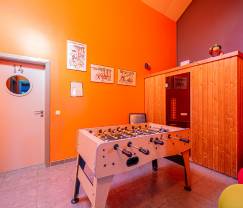 De kinderen die ravotten in de tuin als het mooi weer is? Geen probleem, de grote tuin heeft tal van leuke kinderspellen, zoals: schommels, een grote trampoline en een petanqueveld. Hou er leuke wedstrijden met de hele familie terwijl u de barbecue aanmaakt.  Bij slecht weer spelen de kinderen het best binnen met het tafelvoetbalspel. De volwassenen genieten van de infraroodcabine/sauna die iedereen doet ontspannen.