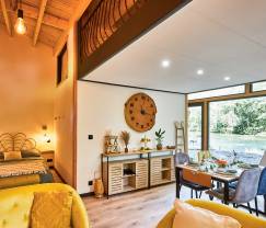 De ligging van het chalet is werkelijk uniek. Het bevindt zich in een afgelegen gebied met vijvers en eeuwenoude bomen. Een serene en rustgevende omgeving, perfect voor een ontspannen vakantie.
