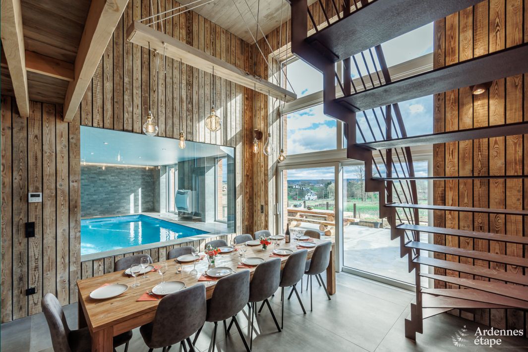 Prachtig vakantiehuis voor familiegroepen, met 6 slaapkamers, 5 badkamers en binnenzwembad in een rustig dorp in de diepe Ardennen, nabij Saint-Hubert. Luxueuze vakantiewoning die in zijn moderne architectuur op uiterst smaakvolle wijze verschillende bouwmaterialen als hout, baksteen en metaal combineert. Elk van de 6 slaapkamers biedt hetzelfde comfort, maar pakt telkens uit met een...