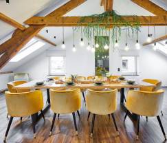 Dit huis is ook uitermate geschikt voor familiefeesten en zakelijke events. Op de begane grond is een ruimte met bar en professionele keuken beschikbaar. Deze ruimte kan op aanvraag gehuurd worden (500€/dag). Graag meer info? Neem contact op met ons!