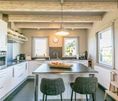 Prachtig vakantiehuis met alles erop en eraan. Heel netjes, tuin goed afgemaakt voor de honden, voldoende activiteiten voorzien in het huis voor de kinderen. Een heel klein minpuntje, de afstap door de dubbele deur naar de tuin is nogal verraderlijk laag. Wij hebben genoten van een TOP weekend en is zeker voor herhaling vatbaar. De attentie bij aankomst is super leuk.