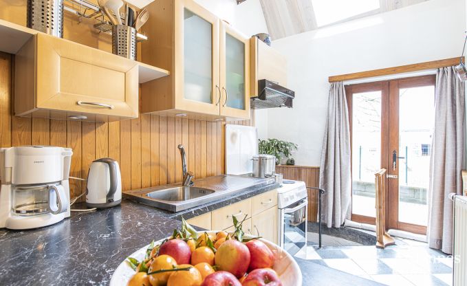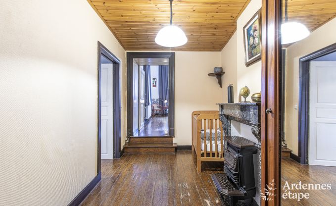 In elk vakantiehuisje van dit historische gebouw is er plaats voor 6 personen. Er werd aan alles gedacht om de gasten een absoluut comfortabel verblijf te bieden. Door de grote ruimtes en de hoge plafonds zijn de kamers elegant en mooi ingericht. Geniet bij de houtkachel in de zitkamer van een moment van rust, of neem een duik in het gemeenschappelijke binnenzwembad (gesloten voor onderhoud op maandag en vrijdag) na je daguitstap. Geniet van de ruime woonkamer met niet alleen een zithoek en eethoek, maar ook een uitgeruste keuken. Op de bovenverdieping vind je 2 slaapkamers, die eenvoudig en warm zijn ingericht. Een van de slaapkamers is voorzien van een babybed. Daarnaast beschik je ook over 2 badkamers, afzonderlijke wc’s en een washok voor nog meer comfort. Buiten is het werkelijk prachtig. Je geniet er van een gemeenschappelijke tuin van 3.000 m² met veel speeltuigen voor de kinderen (schommel, glijbaan en zandbak) en twee terrassen, waarvan één aan de rand van een kleine rivier.
