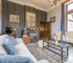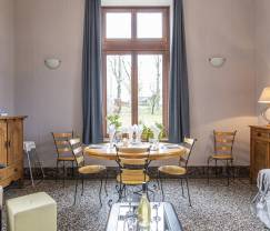 In elk vakantiehuisje van dit historische gebouw is er plaats voor 6 personen. Er werd aan alles gedacht om de gasten een absoluut comfortabel verblijf te bieden. Door de grote ruimtes en de hoge plafonds zijn de kamers elegant en mooi ingericht. Geniet bij de houtkachel in de zitkamer van een moment van rust, of neem een duik in het gemeenschappelijke binnenzwembad (gesloten voor onderhoud op maandag en vrijdag) na je daguitstap. Geniet van de ruime woonkamer met niet alleen een zithoek en eethoek, maar ook een uitgeruste keuken. Op de bovenverdieping vind je 2 slaapkamers, die eenvoudig en warm zijn ingericht. Een van de slaapkamers is voorzien van een babybed. Daarnaast beschik je ook over 2 badkamers, afzonderlijke wc’s en een washok voor nog meer comfort. Buiten is het werkelijk prachtig. Je geniet er van een gemeenschappelijke tuin van 3.000 m² met veel speeltuigen voor de kinderen (schommel, glijbaan en zandbak) en twee terrassen, waarvan één aan de rand van een kleine rivier.