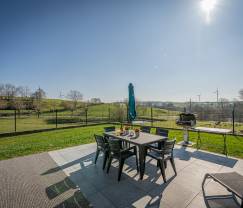 We waren met twee gezinnen op vakantie. Dit huis is daar heel geschikt voor. Het zijn eigenlijk twee losse huizen die verbonden met elkaar zijn, waardoor je ook privacy hebt als je wilt. Uitzicht is heel leuk, de kinderen vonden de dieren heel leuk. Tuin is niet omheind, dus dat was wel uitkijken met een peuter. Het zwembad is niet prive, maar elke keer als we er waren, was er verder niemand. We zouden het huis zeker aanraden, mooie ruimtes, erg schoon en mooi uitzicht!