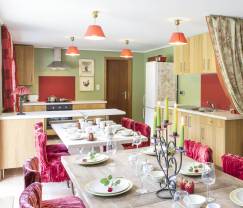 BONNE MAISON POUR 13 PERSONES . MANQUE DES CHAISES POUR LA GRANDE TABLE (GRAND BANC) SUR LES PHOTOS IL Y A DES CHAISES . ASSEZ DE FAUTEUIL POUR 13 PERSONES . MANQUE PENDERIE DANS LES CHAMBRES . MANQUE PENDERIE DANS LES SDB POUR LES ESSUIS ET MANQUE ETAGERE POUR EXEMPLE BROSSE A DENT RASOIR EXT. SINON LA MAISON EST TRES BIEN