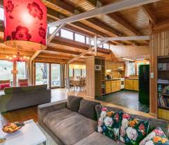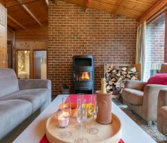 Deze chalet is tegelijk een villa met al het mogelijke moderne comfort. De leefruimte van het vakantiehuis werd gracieus ingericht. De grote zithoek ligt rond een houtkachel en de eetkamer baadt in het licht dankzij de grote glazen ramen. De perfect uitgeruste keuken geeft uit op de zithoek. Alles werd zodanig ingericht dat iedereen zich als in een cocon geborgen voelt. De 2 slaapkamers die op dezelfde gelijkvloerse verdieping liggen, zijn met een stijlvolle eenvoud gedecoreerd.