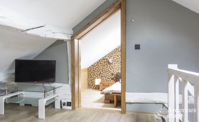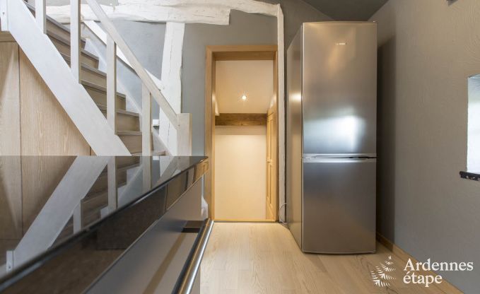 In het hart van een karaktervol pand, is dit gebouw, dat wordt gedeeld met de eigenaren van het vakantiehuis, zo ontworpen om bezoekers alle comfort en uitrusting te bieden van een modern verblijf in een authentieke omgeving. De woonkamer heeft een eigentijdse inrichting, uiterst netjes, met een comfortabele zithoek en een zeer aangename eetzaal, waar maaltijden worden geserveerd in een vriendelijke sfeer. Weet dat een tweede woonkamer boven toegankelijk is, ideaal om even rustig een boek te lezen. Je vindt hier ook een slaapbank voor 2 personen, zodat het huisje probleemloos 4/6 personen kan ontvangen. De accommodatie is zeer ruim en bijzonder functioneel, met een goed uitgeruste keuken, waar het je aan niets ontbreekt om jouw gerechten gemakkelijk te laten slagen. De badkamer is ook mooi en is voorzien van zeer moderne apparatuur. Tot slot kun je genieten van de uitzonderlijke omgeving vanaf het mooie terras met barbecue.