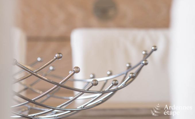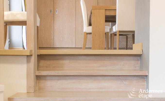 In het hart van een karaktervol pand, is dit gebouw, dat wordt gedeeld met de eigenaren van het vakantiehuis, zo ontworpen om bezoekers alle comfort en uitrusting te bieden van een modern verblijf in een authentieke omgeving. De woonkamer heeft een eigentijdse inrichting, uiterst netjes, met een comfortabele zithoek en een zeer aangename eetzaal, waar maaltijden worden geserveerd in een vriendelijke sfeer. Weet dat een tweede woonkamer boven toegankelijk is, ideaal om even rustig een boek te lezen. Je vindt hier ook een slaapbank voor 2 personen, zodat het huisje probleemloos 4/6 personen kan ontvangen. De accommodatie is zeer ruim en bijzonder functioneel, met een goed uitgeruste keuken, waar het je aan niets ontbreekt om jouw gerechten gemakkelijk te laten slagen. De badkamer is ook mooi en is voorzien van zeer moderne apparatuur. Tot slot kun je genieten van de uitzonderlijke omgeving vanaf het mooie terras met barbecue.