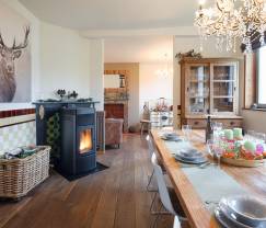 Deze karakteristieke stenen woning straalt charme uit. De zorgvuldig gekozen, comfortabele meubels dragen bij aan de warme sfeer. Elke slaapkamer heeft een eigen badkamer, wat zorgt voor extra comfort en privacy. Ondanks het ontbreken van een privé buitenruimte, is het huis ruim en licht. Je kunt genieten van een gezellige avond met vrienden of familie. De eerste lading pellets voor de kachel wordt aangeboden door de eigenaar.