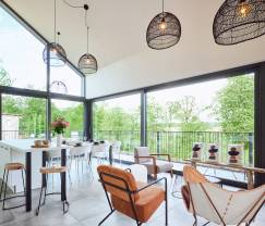 We zijn met het gezin een midweek geweest. Volwassenen. Het huis is modern en ruim. Fijn dat er kamers zijn met eigen douche. Het was prachtig weer, dus veel buiten geweest en daar leent dit huis zich perfect voor. Veel mogelijkheden. De hottub is een leuke aanvulling. Het huis is van alle gemakken voorzien. Paar minpuntjes, geen afscheiding in de douche, waardoor de gehele vloer nat wordt. Het is erg warm in huis, zonwering zou geen luxe zijn, evenals horren in de slaapkamers.