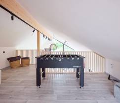 Maar het echte hoogtepunt van deze woning zijn de buitenfaciliteiten. Stel je voor dat je de dag afsluit in het houten warmwaterbad, terwijl je luistert naar het burlen van de herten in de nabijgelegen bossen. Of misschien heb je zin in een spelletje petanque, gevolgd door een gezellige avond rond de vuurkorf. En met een barbecue en een voetbaltafel bij de hand, is er altijd iets te doen!