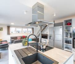Zeer mooi en ruim vakantiehuis voorzien van alle nodige comfort. De keuken is perfect uitgerust, wij hadden enkel wat problemen met de vaatwasser. De vaat kwam er altijd wat dof uit (we gebruikten all-in-one tabletten) en het bovenste rek is beschadigd en daardoor ook wat verroest. De veranda/eetkamer is zeer ruim en aangenaam om te zitten maar warmt zeer snel op, op warme dagen wordt het daar ongetwijfeld zeer warm.
