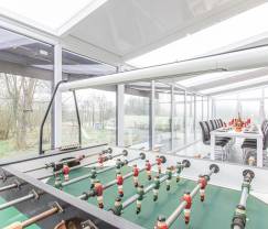 Très belle maison sauf qu'il manquait les tv dans les chambres comme décrit à la location . Le kicker est dans un piteux état (impossible d'y jouer) et le sauna se trouvant à l'extérieur était sale . Très bonne literie dans toutes les chambres . La veranda est super