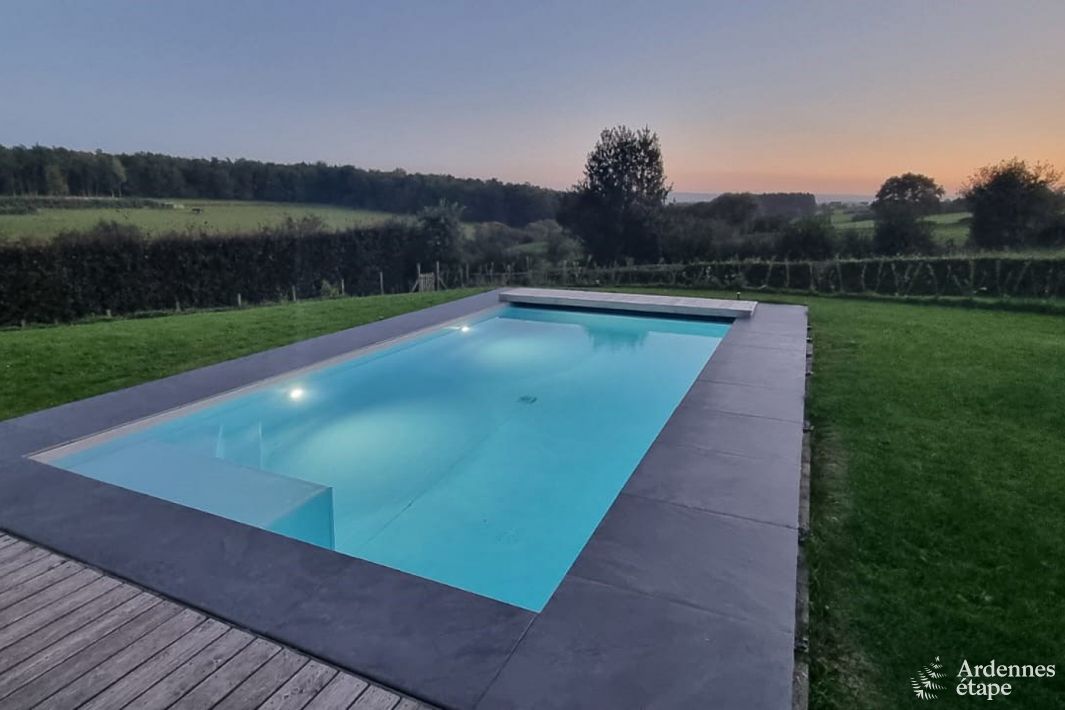 Deze moderne villa (4 slaapkamers, 2 badkamers) vlak bij Spa straalt pure luxe en ontspanning uit. Zwembad en adembenemend uitzicht! Zin om je favoriete mensen nog eens te verzamelen voor een weekendje Ardennen? Dan zit je hier goed! Wanneer iedereen hier binnendruppelt, zal de eerste gedachte zeker zijn “Wat is het hier gezellig!” Die gedachte zal zeker ook in je opkomen in de...