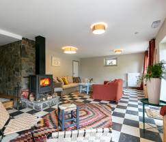 Achter deze vakwerkgevel schuilt een prachtig interieur met bohemian, vintage en hedendaagse invloeden. Van een unieke sfeer gesproken! De kleuren, het meubilair en de kachel geven de leefruimte een warme uitstraling. De kamers zien er bijzonder chic uit en hebben allemaal een eigen badkamer, zodat iedereen over voldoende privacy beschikt. Het ene leuke moment volgt hier het andere op, zowel binnen als buiten. Denk maar aan een partijtje biljart of petanque, een namiddagje in de hangmat met een goed boek erbij, kinderen die in de tuin ravotten, een wellnessmoment in de infraroodsauna ... Voor ieder wat wils!