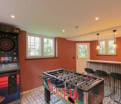 Deze woning combineert comfort met ontspanning dankzij een indrukwekkend wellnessgedeelte met een sauna en een jacuzzi, perfect om even helemaal tot rust te komen na een lange wandeling in de frisse buitenlucht. Of je nu met familie of vrienden bent, de gezellige bar die ook dienstdoet als speelruimte nodigt uit tot een ontspannen aperitief of een spannende pot tafelvoetbal en dart.