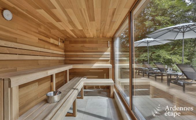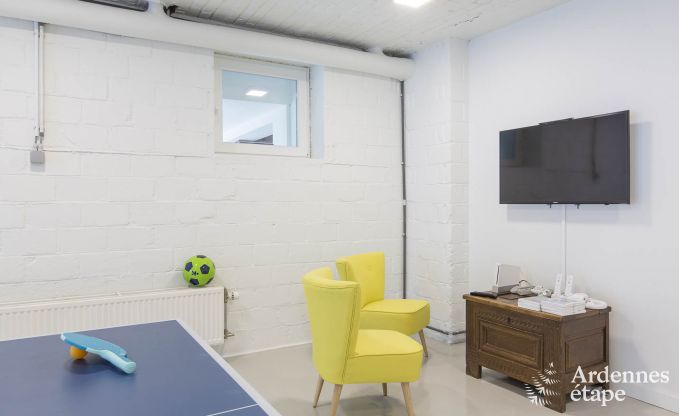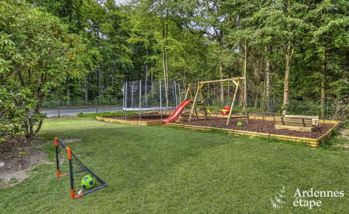 Bij een goede vakantie hoort ook een momentje van ontspanning. Een fantastische ontspanningsruimte werd daarom voor jou ingericht. De benedenverdieping met grote sauna met zicht op de tuin, relaxatiezone met hittelamp en grote buitenjacuzzi zal de wellnessliefhebbers betoveren. De accommodatie is speciaal uitgerust voor families. De jeugd kan zich uitleven in de speelzaal met pingpong- en kickertafel terwijl de kleintjes zich amuseren op het speeltuig in de tuin.