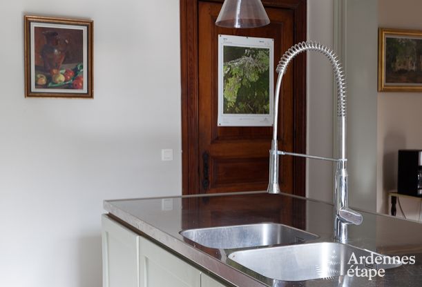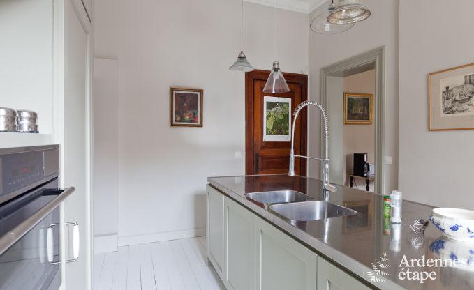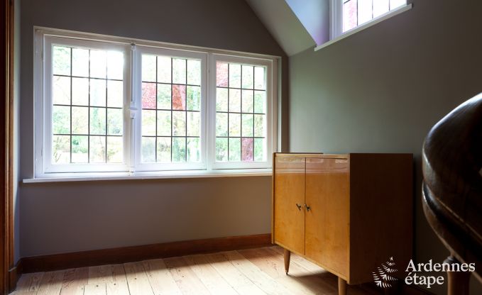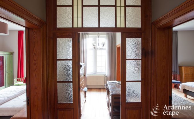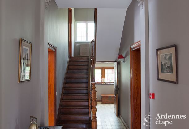 Deze authentieke villa in Spa werd een andere bestemming toebedeeld en ontvangt nu in allerbeste omstandigheden gasten op doortocht in de leuke thermale stad. Dankzij de mooie oppervlakte en de goed ingerichte vertrekken kan dit logies met gemak 14 personen herbergen. De 6 slaapkamers zijn persoonlijk gedecoreerd en zijn allemaal even aangenaam om in te slapen. Iedereen zal zich thuis voelen en de kleine gewoontes zullen snel de kop opsteken. Op de eerste verdieping zijn een hammam en een mooie leeszaal aanwezig, ideaal voor wie op zoek is naar rust. De kinderen werden niet vergeten en zullen ten volle van hun vakantie kunnen genieten dankzij een speelzaal op de kelderverdieping en de grote speelruimte buiten. De gelijkvloerse verdieping bestaat uit grote ruimtes met een zitkamer en een prachtig bemeubelde en gedecoreerde eetkamer. Verder staat er een zeer goed uitgeruste keuken tot je beschikking. Je zult met veel gemak de smaakpapillen van je tafelgenoten kunnen verwennen.
