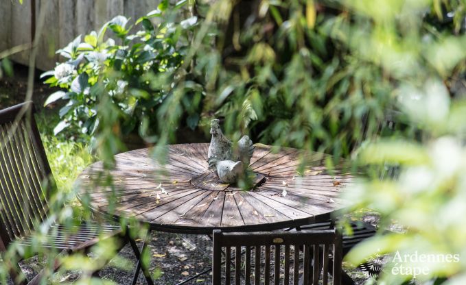 De tuin van dit vakantiehuis in de provincie Luik heeft veel verrassingen voor jou! De keuken komt uit op een eerste terras aan de achterkant van de woning met eettafel, stoelen en barbecue voor heerlijke zomerse maaltijden in de schaduw. Een trapje leid je naar een tweede ontspanningsruimte in de tuin voor het lezen van een boek, een dutje in de zon of een spelletje verstoppertje met je kinderen in deze prachtige tuin vol hoekjes en gaatjes.