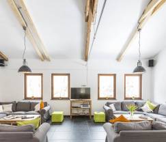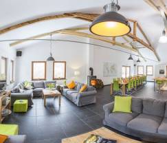 Bij aankomst, zult u genieten van de grote centrale gang die u zal leiden naar de leefruimte, alsook langs de deuren van de 8 slaapkamers die elk een eigen badkamer en douche verbergen. Aan de andere kant van de gang, kunnen zowel klein als groot  zich vermaken in de speelkamer met veelsoortige mogelijkheden (darten of kickeren voor de grotere, bowling, matten voor auto's en tal van andere spelletjes voor kinderen).