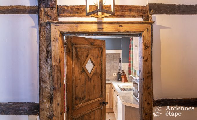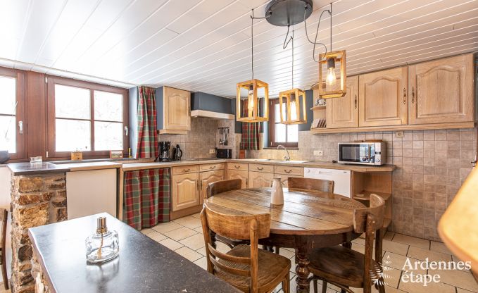 De keuken van je bevallige vakantiehuis in Stavelot is open en geeft uit op de eetkamer. Je kunt met andere woorden allemaal samen aperitieven en koken. De houten balken zijn de ziel van het huis en verlenen het zijn bijzondere karakter. Sommige muren werden opengebroken waardoor de open ruimtes zijn ontstaan. Na een dag gevuld met wandelingen, uitstapjes en bezoeken of... eenvoudigweg nietsdoen, kun je je in de zithoek warmen en soezen aan het knisperende houtvuur.