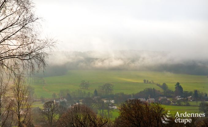 De vakantiewoning ligt in de Belgische Ardennen op de hoogten tussen Stavelot en Malmedy. Je geniet er van een adembenemend zicht op de vallei. Is er iets mooiers dan de dag te beginnen met een ontbijt op het terras vanwaar je de groene streek goed kunt overschouwen om vervolgens in diezelfde streek op ontdekking te trekken?