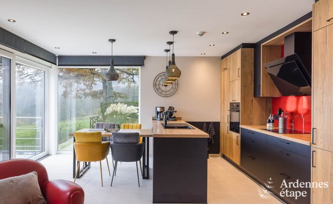 Gezellig en zeer helder vakantiehuis in Stavelot. Spectaculaire eigentijdse inrichting, prachtig terras en jacuzzi met panoramisch uitzicht. Je hond is welkom.
