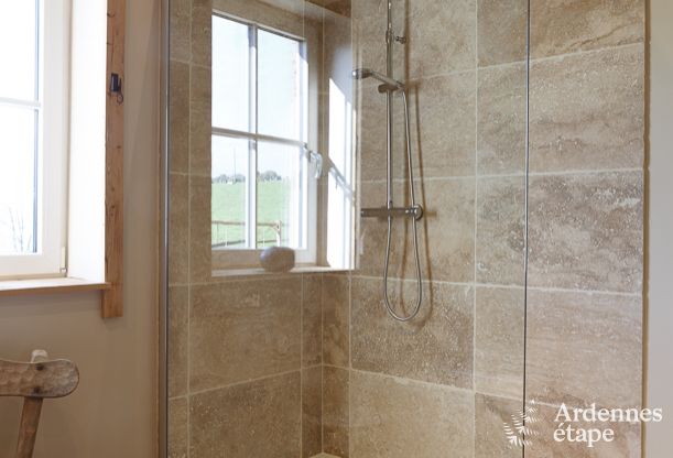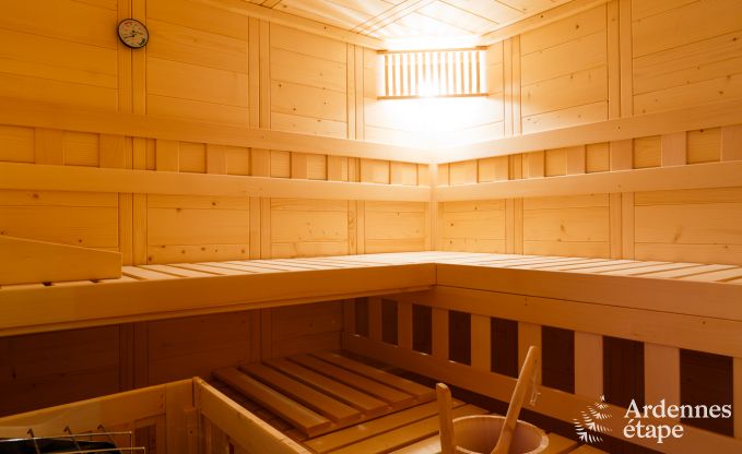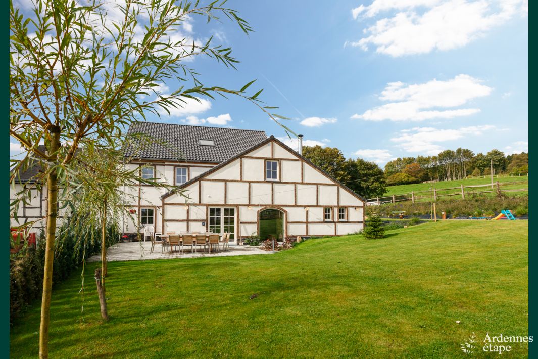 Deze super-de-luxe vakantiewoning nabij Stavelot, provincie Luik, is werkelijk van alle gemakken voorzien om jou en je familie een fantastische groepsvakantie te bezorgen. De warme en zeer charmante inrichting zorgt dankzij het gebruik van natuurlijke materialen van hoge kwaliteit, voor een rustgevende sfeer. Terwijl de volwassenen relaxen in de ontspanningsruimte, met onder meer sauna en hydromassage douche, maken de kinderen plezier in de speelkamer, die is voorzien van een tafelvoetbalspel, pingpongtafel en kinderspellen.