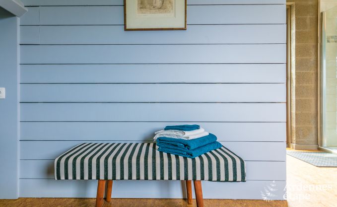 In de hele gîte zorgen de zachte materialen en kleuren, die werden gekozen voor de decoratie, ervoor dat je meteen tot rust komt.