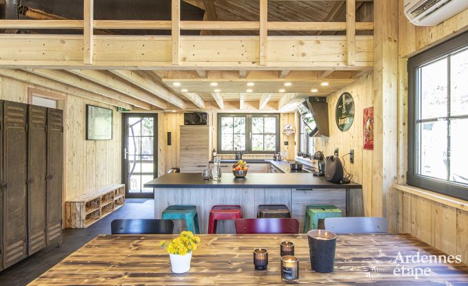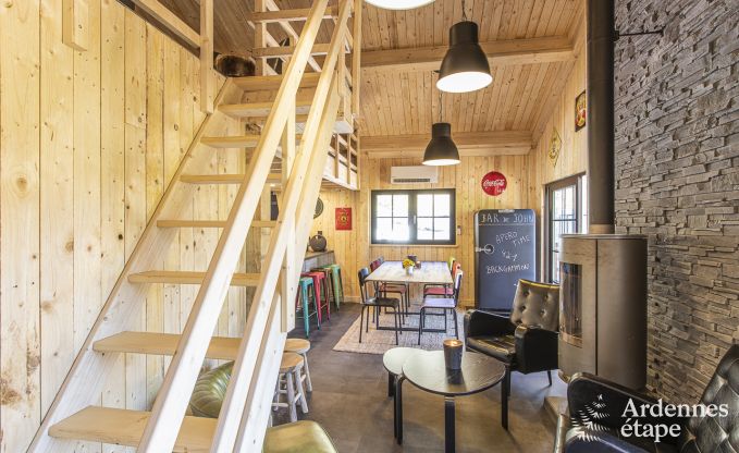 Welkom in deze charmante  chalet  voor 6 personen, gelegen in het pittoreske  Stoumont . Dit vakantiehuis biedt een unieke mix van  vintage  en  moderne  elementen: een heerlijke combinatie van  oude kajaks ,  militaire opbergkastjes  en een  interieur in hout . Het is de perfecte plek voor liefhebbers van een  warme en...